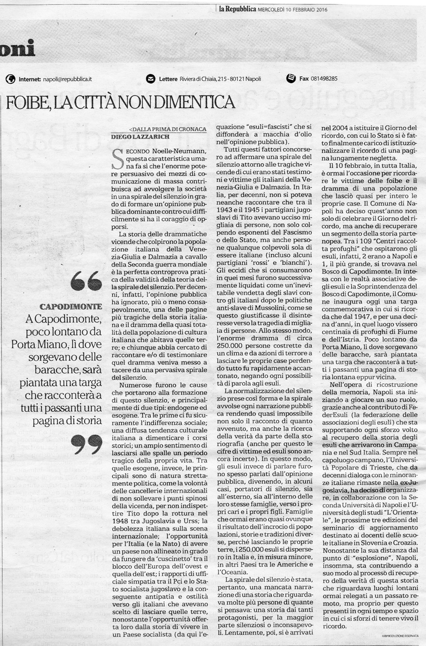 « Repubblica sul “Giorno del Ricordo”