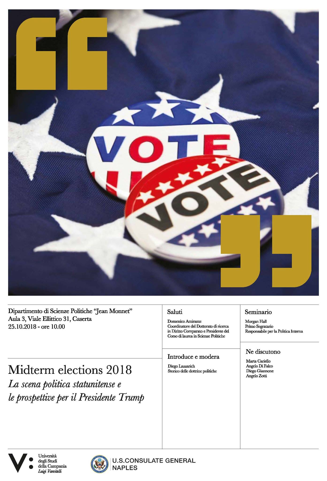 Locandina del seminario di Morgan Hall: “Midterm elections 2018”