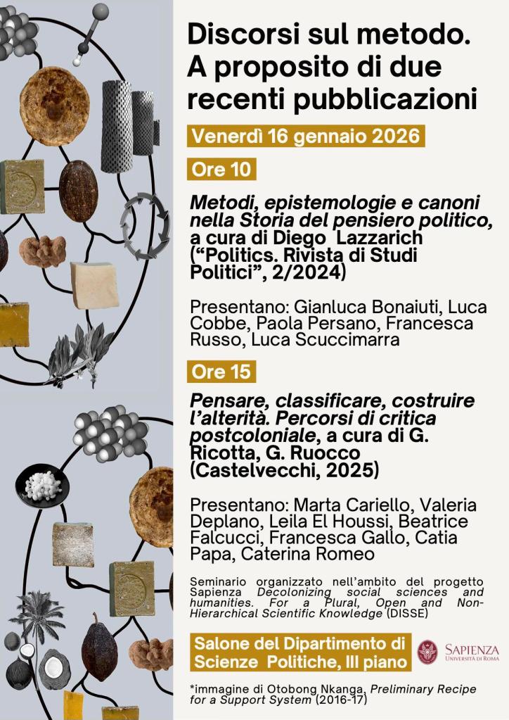Con gli amici e colleghi dell’Università di Roma “La Sapienza”, il 16/1/2026 presentiamo il numero monografico Metodi, epistemologie e canoni nella Storia del pensiero politico di “Politics. Rivista di Studi Politici”: https://rivistapolitics.eu/n22/