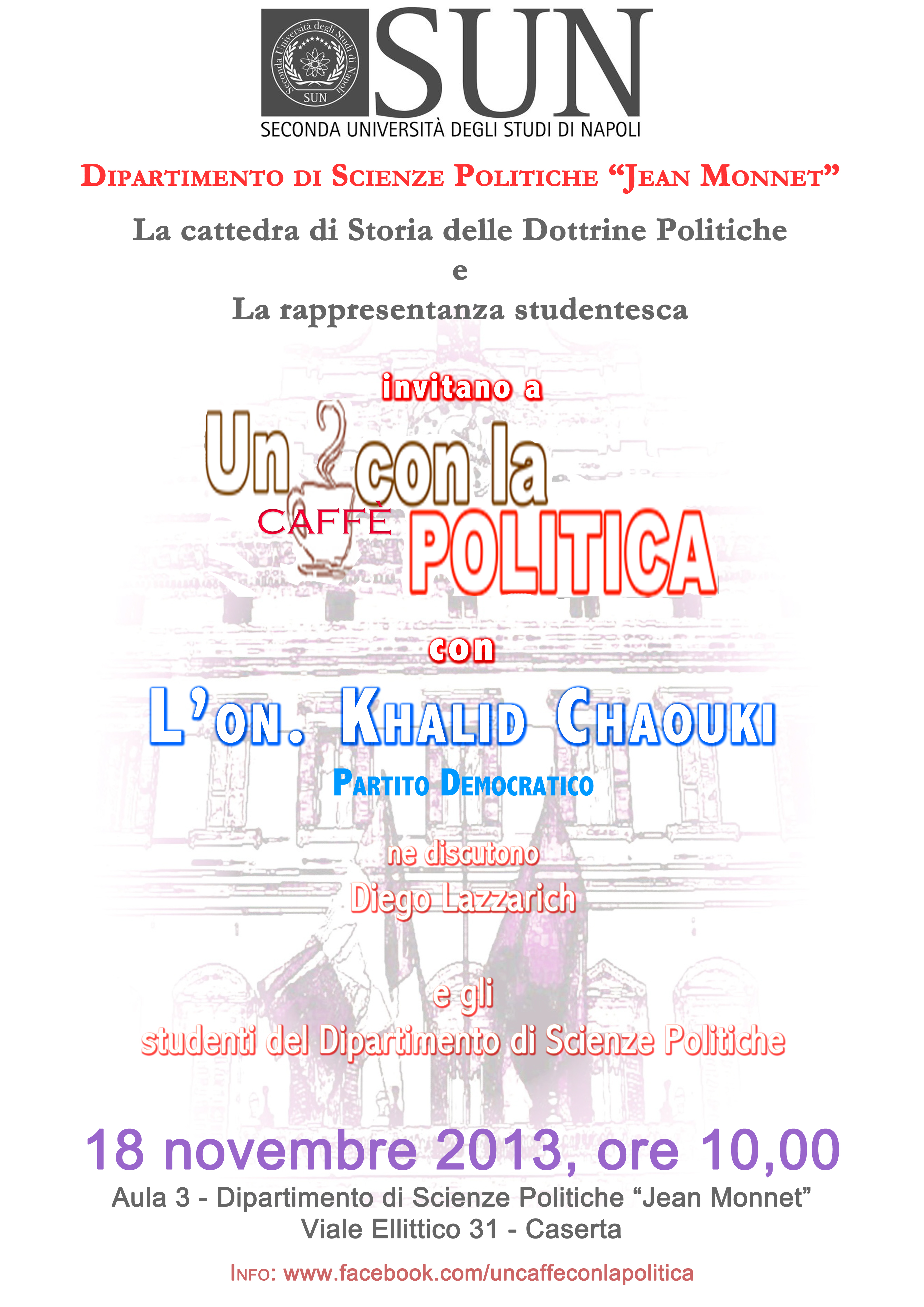 Sul SUNmagazine un articolo dedicato a “Un caffè con la politica” di lunedì 18 novembre 2013, h. 10 (Dipartimento di Scienze Politiche “Jean Monnet”) con l’on. Khalid Chaouki.