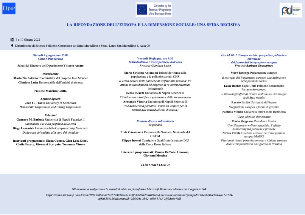 Giovedì, 9 giugno, ore 15: Convegno internazionale “Cura e democrazia”